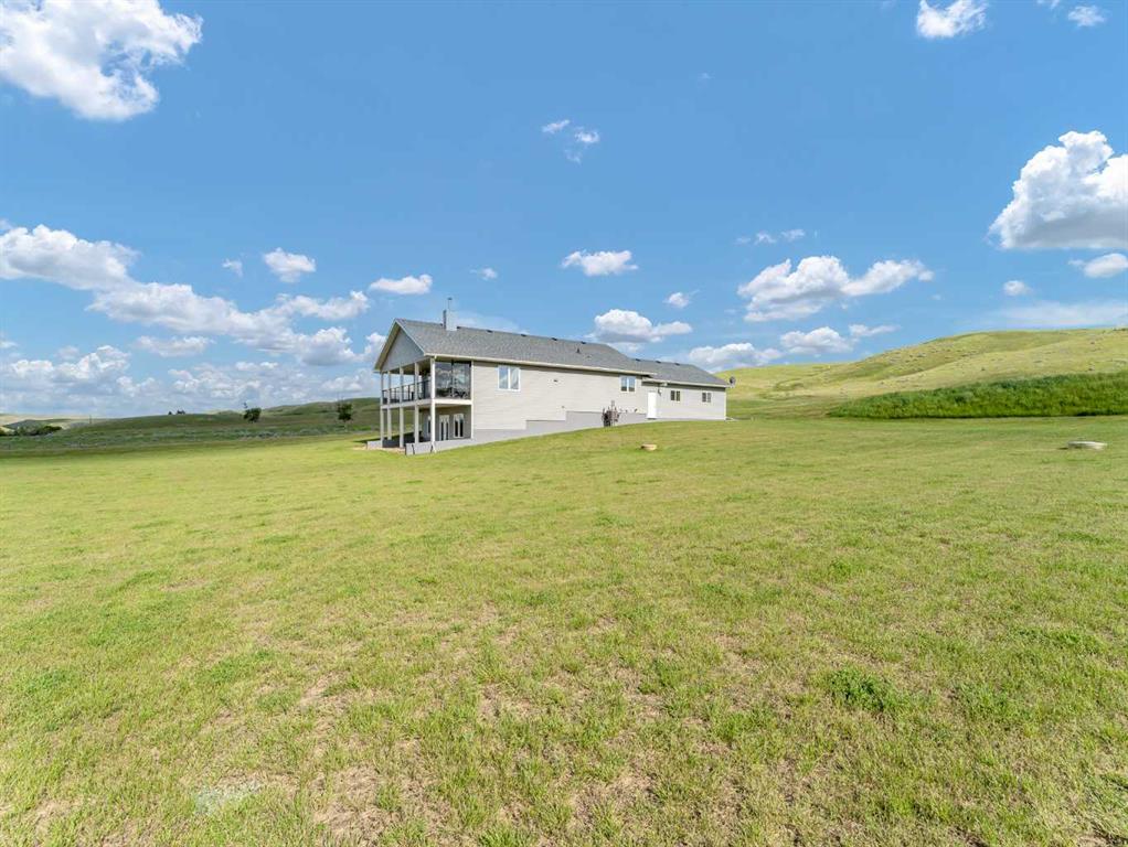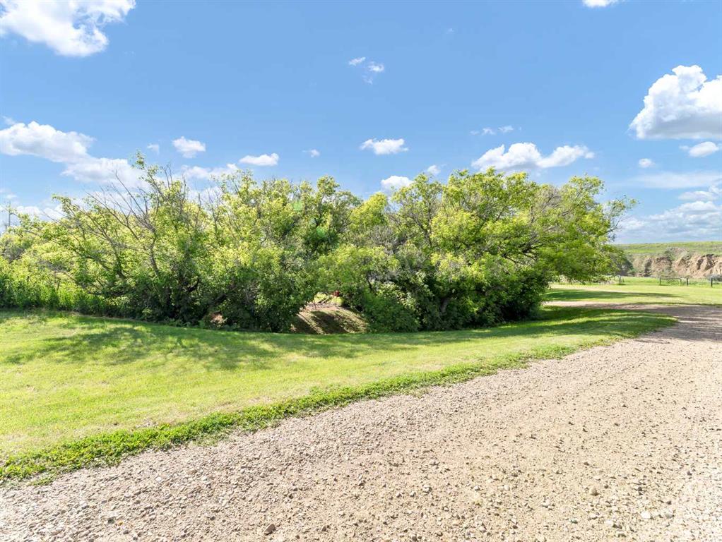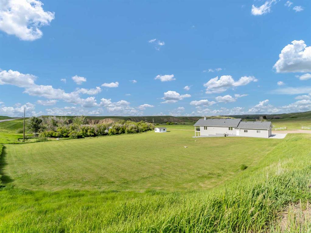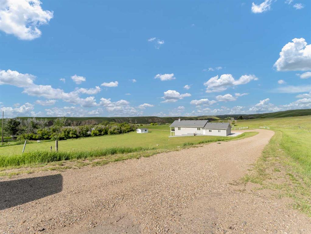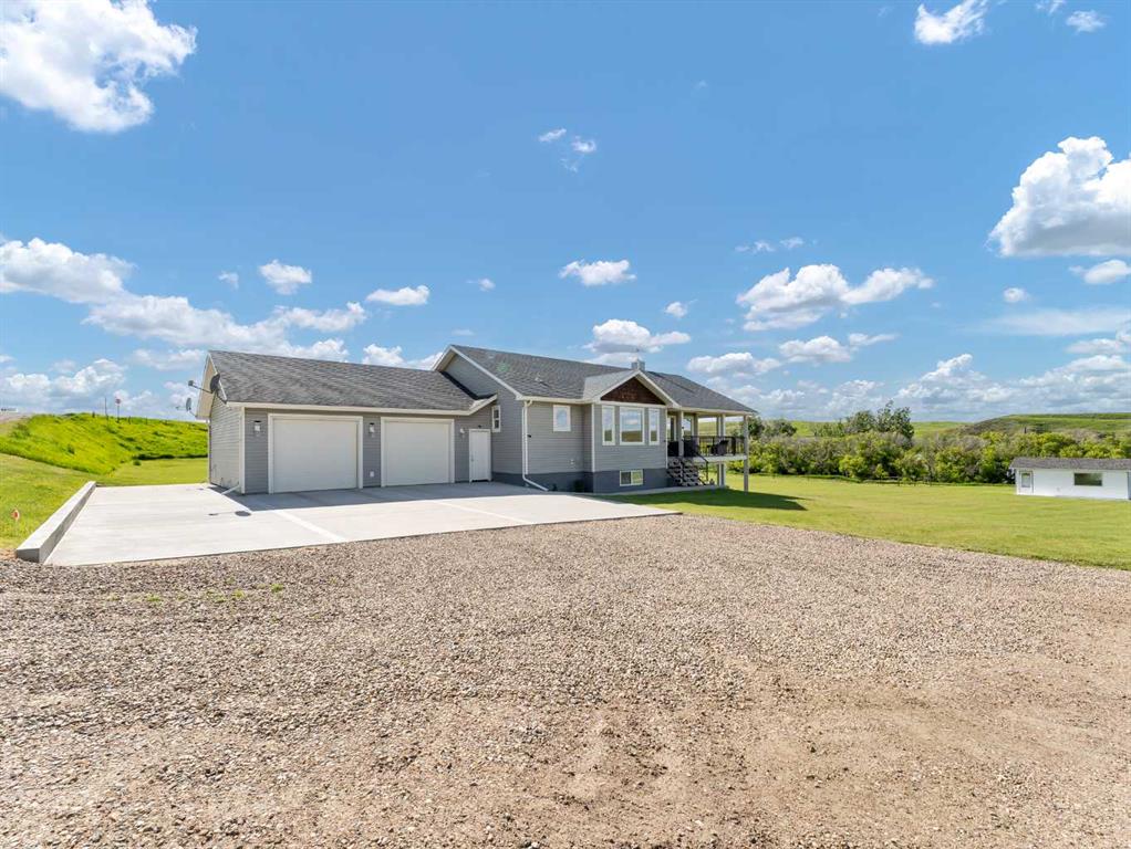 This meticulously maintained acreage is a short 20 minute drive from Medicine Hat and offers 4.31 acres of serene land & breathtaking views. The property offers a beautiful fully developed walk-out basement bungalow with attached double garage, summer kitchen, bunkhouse, quonset, 2 seacans, & corrals. The main house was built in 2011 by Lacey Homes and offers 1476 sqft on the main floor. Gorgeous vinyl plank flooring and warm natural light flow throughout the open concept floor plan featuring a large living room with wood burning stove, great sized dining area with French doors out to the large, covered deck, and beautiful oak kitchen with granite countertops, large eat-at centre island, tile backsplash, newer stainless appliances, and corner pantry. The primary bedroom offers gorgeous views from the large windows, a walk-in closet, and 3-piece ensuite with walk-in shower. A second bedroom, large 4-piece main washroom, and a large laundry room with direct access to the attached oversized double garage finish off the main floor. Downstairs you will appreciate all of the natural light that this walk-out level offers. The generous family room has space for a living area, games room, and/or office space and French doors leading you out to the back yard. The large 3rd bedroom hosts a walk-in closet and cheater door to the 4-piece bathroom. This home offers tons of storage, a finished and heated attached 30’0” x 25’4” garage with floor drain, wrap around front veranda/deck, b/in sound system up & down and on the decks, and duradeck. The septic tank & field and well were also installed in 2011 when the home was built. This acreage is the perfect set up if you’re looking for a place to have some livestock, as the property is neighboured by a creek to the north. The outbuildings are all conveniently tucked away from the main residence surrounded by mature trees. There is a 16×24 building currently being used as a summer kitchen, a 26×31 quonset, a 8×12 shed, and a 16×24 bunk house that could easily be converted into a barn for the animals. The property has 2 wells, one at the main residence and one down with the outbuildings. This property has been kept as neat as a pin, be sure to check it out!