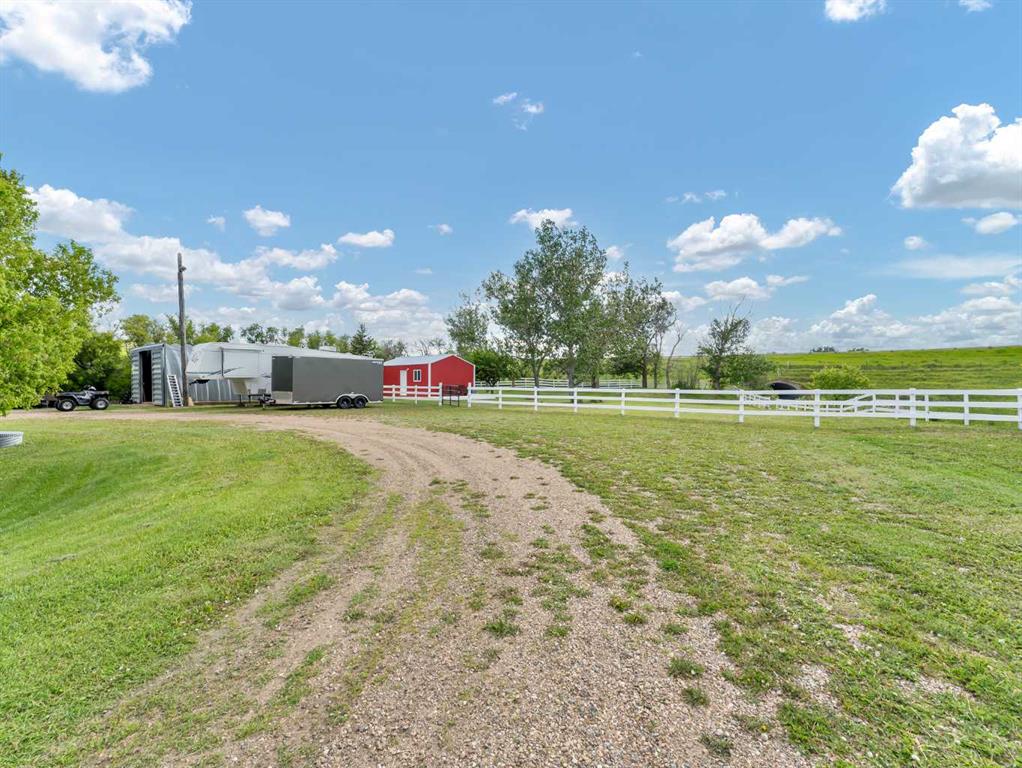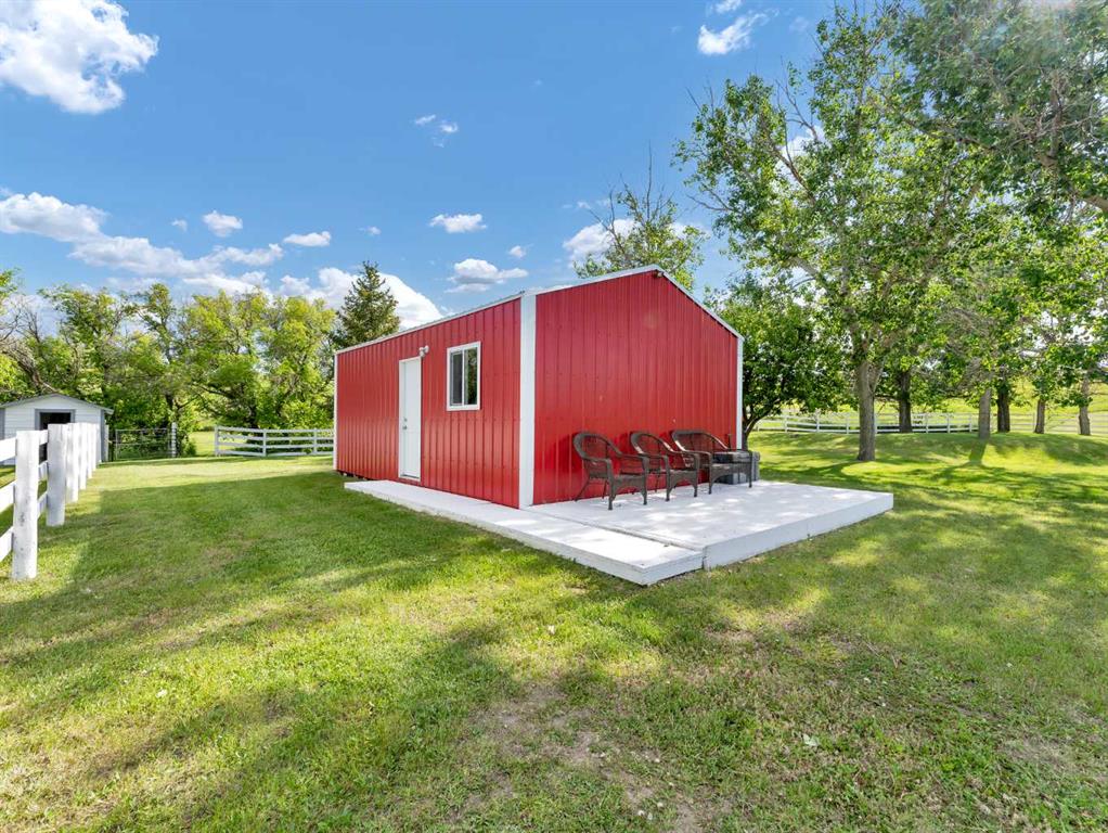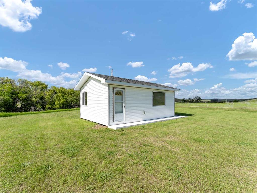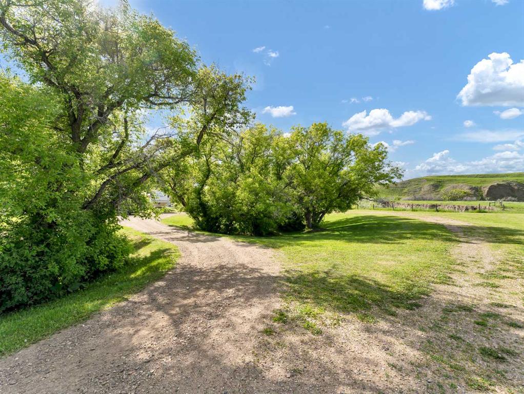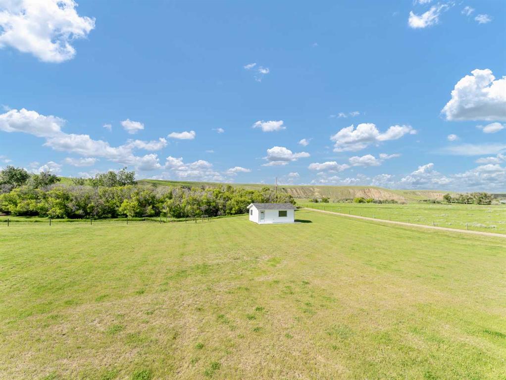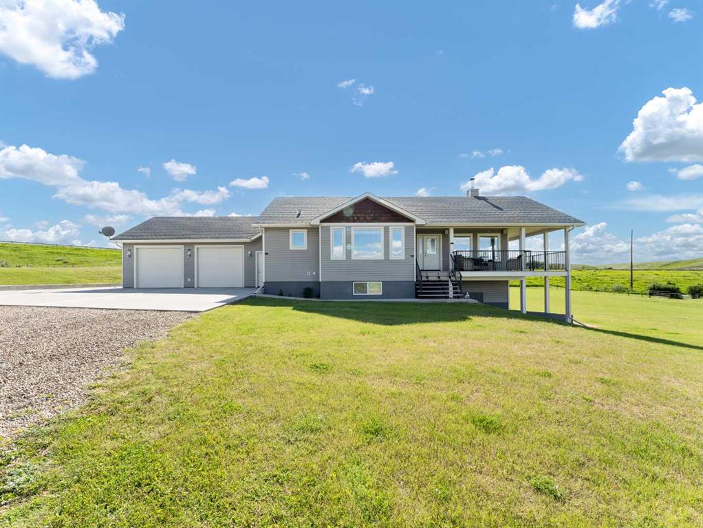 This meticulously maintained acreage is a short 20 minute drive from Medicine Hat and offers 4.31 acres of serene land & breathtaking views. The property offers a beautiful fully developed walk-out basement bungalow with attached double garage, summer kitchen, bunkhouse, quonset, 2 seacans, & corrals. The main house was built in 2011 by Lacey Homes and offers 1476 sqft on the main floor. Gorgeous vinyl plank flooring and warm natural light flow throughout the open concept floor plan featuring a large living room with wood burning stove, great sized dining area with French doors out to the large, covered deck, and beautiful oak kitchen with granite countertops, large eat-at centre island, tile backsplash, newer stainless appliances, and corner pantry. The primary bedroom offers gorgeous views from the large windows, a walk-in closet, and 3-piece ensuite with walk-in shower. A second bedroom, large 4-piece main washroom, and a large laundry room with direct access to the attached oversized double garage finish off the main floor. Downstairs you will appreciate all of the natural light that this walk-out level offers. The generous family room has space for a living area, games room, and/or office space and French doors leading you out to the back yard. The large 3rd bedroom hosts a walk-in closet and cheater door to the 4-piece bathroom. This home offers tons of storage, a finished and heated attached 30’0” x 25’4” garage with floor drain, wrap around front veranda/deck, b/in sound system up & down and on the decks, and duradeck. The septic tank & field and well were also installed in 2011 when the home was built. This acreage is the perfect set up if you’re looking for a place to have some livestock, as the property is neighboured by a creek to the north. The outbuildings are all conveniently tucked away from the main residence surrounded by mature trees. There is a 16×24 building currently being used as a summer kitchen, a 26×31 quonset, a 8×12 shed, and a 16×24 bunk house that could easily be converted into a barn for the animals. The property has 2 wells, one at the main residence and one down with the outbuildings. This property has been kept as neat as a pin, be sure to check it out!