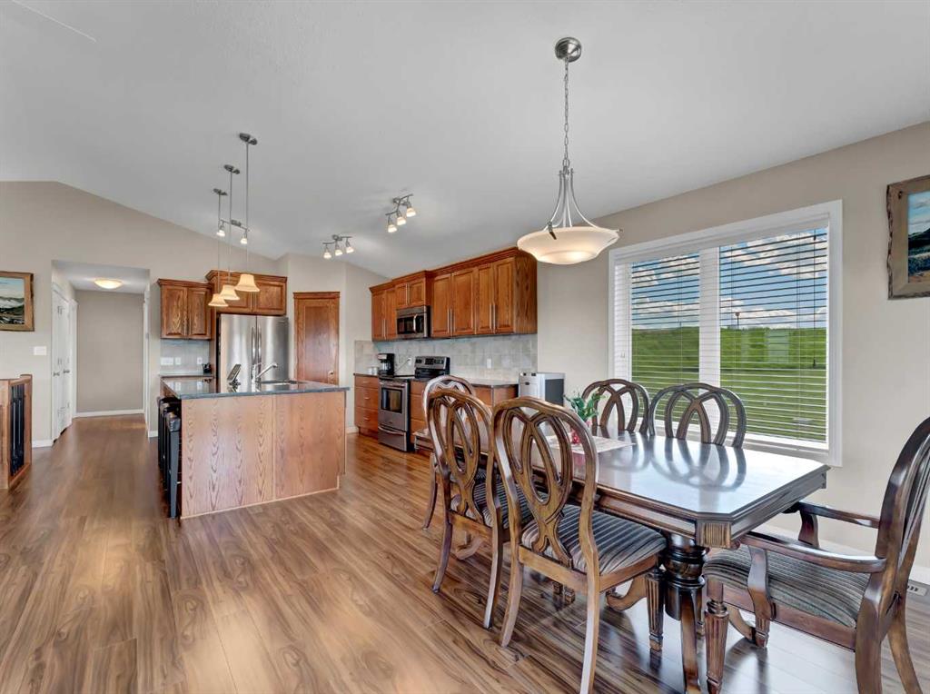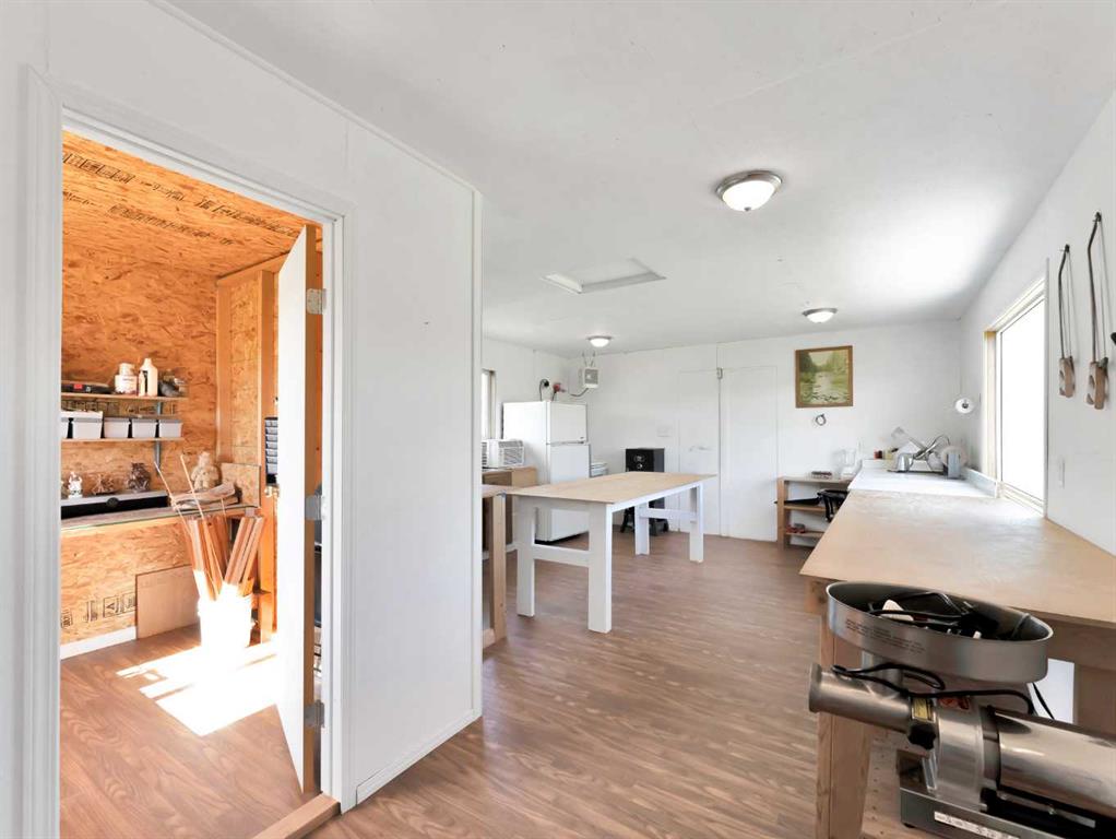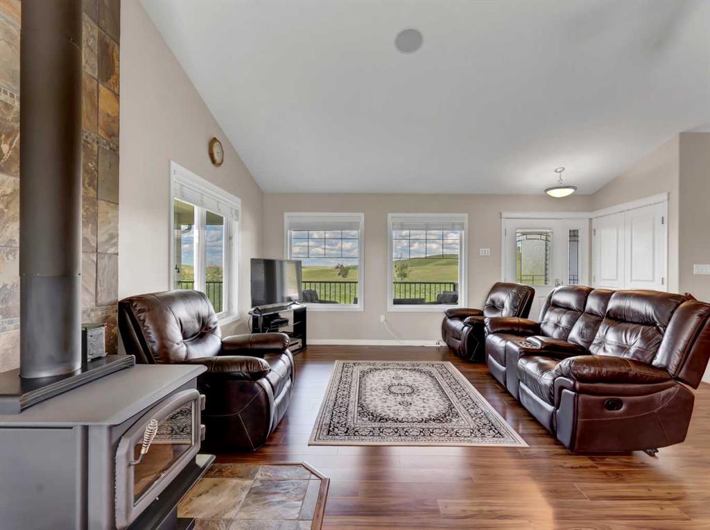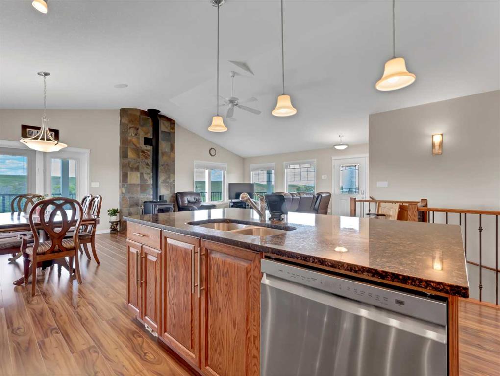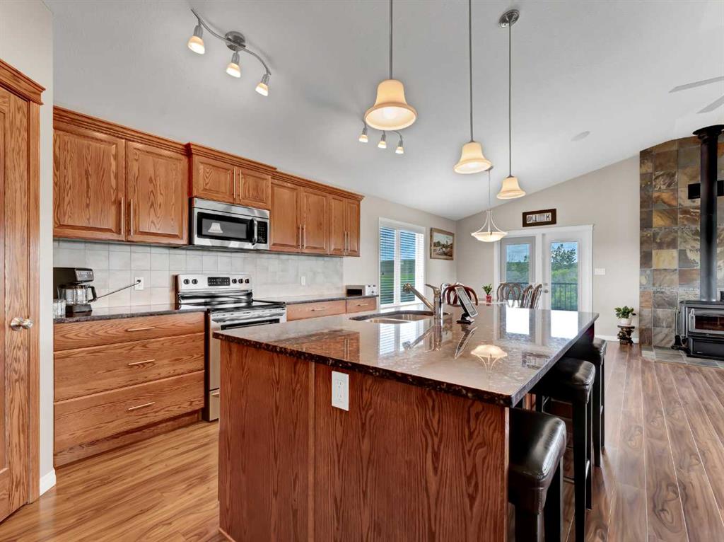 This meticulously maintained acreage is a short 20 minute drive from Medicine Hat and offers 4.31 acres of serene land & breathtaking views. The property offers a beautiful fully developed walk-out basement bungalow with attached double garage, summer kitchen, bunkhouse, quonset, 2 seacans, & corrals. The main house was built in 2011 by Lacey Homes and offers 1476 sqft on the main floor. Gorgeous vinyl plank flooring and warm natural light flow throughout the open concept floor plan featuring a large living room with wood burning stove, great sized dining area with French doors out to the large, covered deck, and beautiful oak kitchen with granite countertops, large eat-at centre island, tile backsplash, newer stainless appliances, and corner pantry. The primary bedroom offers gorgeous views from the large windows, a walk-in closet, and 3-piece ensuite with walk-in shower. A second bedroom, large 4-piece main washroom, and a large laundry room with direct access to the attached oversized double garage finish off the main floor. Downstairs you will appreciate all of the natural light that this walk-out level offers. The generous family room has space for a living area, games room, and/or office space and French doors leading you out to the back yard. The large 3rd bedroom hosts a walk-in closet and cheater door to the 4-piece bathroom. This home offers tons of storage, a finished and heated attached 30’0” x 25’4” garage with floor drain, wrap around front veranda/deck, b/in sound system up & down and on the decks, and duradeck. The septic tank & field and well were also installed in 2011 when the home was built. This acreage is the perfect set up if you’re looking for a place to have some livestock, as the property is neighboured by a creek to the north. The outbuildings are all conveniently tucked away from the main residence surrounded by mature trees. There is a 16×24 building currently being used as a summer kitchen, a 26×31 quonset, a 8×12 shed, and a 16×24 bunk house that could easily be converted into a barn for the animals. The property has 2 wells, one at the main residence and one down with the outbuildings. This property has been kept as neat as a pin, be sure to check it out!