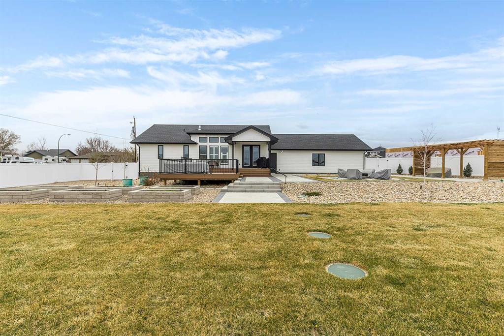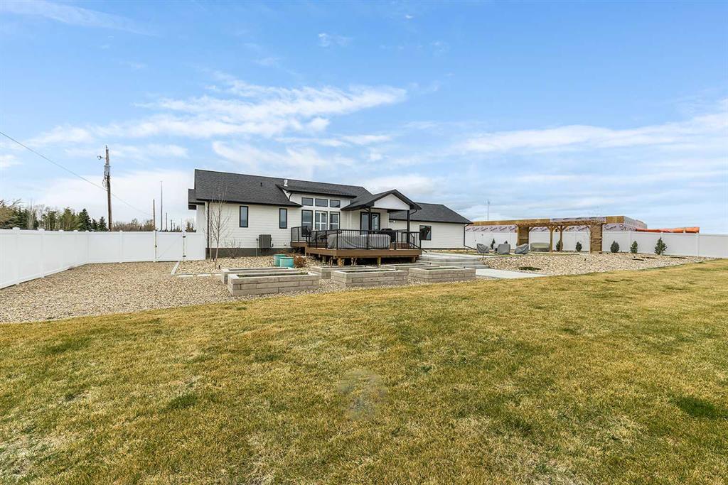 Welcome to a home where timeless elegance meets modern sophistication. Built by Jasper Homes, this stunning bungalow-style modern farmhouse is tucked away on a spacious half-acre lot in the Yuma Valley development. Step inside to experience the elevated craftsmanship that is swoon-worthy! The open-concept layout is anchored by soaring 9-foot ceilings and flooded with natural light from oversized windows. Wide-plank floors, custom millwork, and high-end finishes set the tone for luxury living. At the heart of the home is a showstopping kitchen, crafted for both daily living and entertaining. With custom Hiebert cabinetry, quartz countertops, a massive central island, designer lighting, premium stainless steel appliances, and a walk-through pantry, this kitchen balances style with thoughtful functionality. The main floor offers three generously sized bedrooms, including a tranquil primary suite complete with a spa-inspired ensuite. Unwind in the tiled glass shower framed by dual vanities and quartz countertops. The fully finished basement is designed for elevated relaxation and fun. It features high ceilings, a custom floor-to-ceiling entertainment wall, a sleek dry bar, and two additional bedrooms with walk-in closets—perfect for family, guests, or home office needs. Outdoors, the magic continues… A large deck is ideal for alfresco dining, while a handcrafted artisan pergola, & a built-in gas fire bowl create the perfect settings for cozy evenings under the stars. Raised garden beds add charm and offer space to grow your own produce or flowers. An oversized triple-car garage provides ample room for vehicles, toys, and storage, with a wide driveway offering extra parking for guests. This is more than just a home—it’s a lifestyle. Experience refined country living with all the modern comforts, just minutes from city amenities.