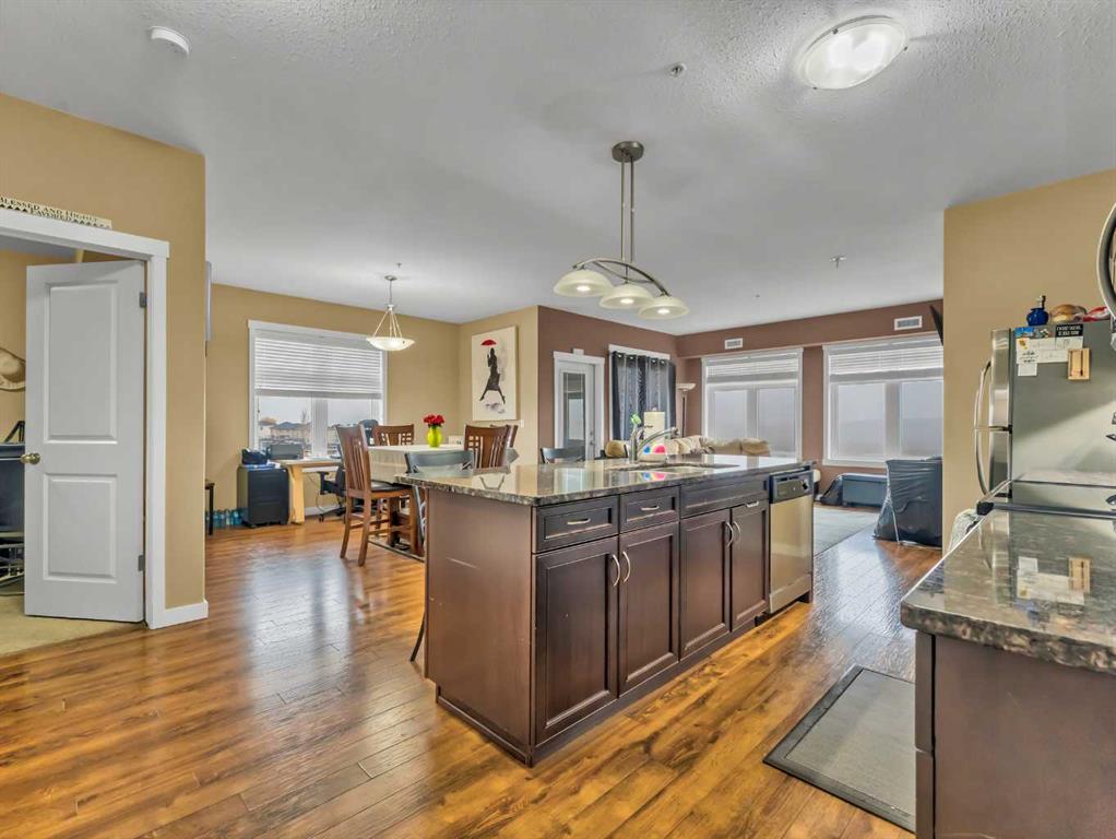 #322 19 Terrace View NE – Bright Corner Unit with Gorgeous River Valley Views. This inviting 2-bedroom, 2-bathroom corner condo offers a modern, easy-living lifestyle with sweeping views of the river valley. Thoughtfully maintained and filled with natural light, the home features a spacious open layout that feels both stylish and comfortable. The kitchen stands out with its granite countertops, stainless steel appliances, and a generous island—perfect for meal prep, casual dining, or entertaining. It opens seamlessly into the dining area and living room, where large windows create a warm and airy atmosphere. From here, step onto your private covered deck, an excellent place to relax with a morning coffee, unwind in the evening, or fire up the barbecue in the summer. The primary bedroom includes a walk-through closet that leads to a private 3-piece ensuite, offering great storage and convenience. A second bedroom and full 4-piece bathroom add versatility for guests, work-from-home needs, or hobbies. You’ll also appreciate the in-suite laundry and the included underground parking stall. The building is pet-friendly (with restrictions) and has no age restrictions, making it an excellent option for a wide range of buyers. Condo fees are $457/month and cover all utilities and maintenance, including electricity, heat, water, sewer, trash, snow removal, grounds upkeep, parking, and the reserve fund—providing truly worry-free living. A fantastic opportunity to enjoy comfort, convenience, and exceptional views in a desirable NE location.