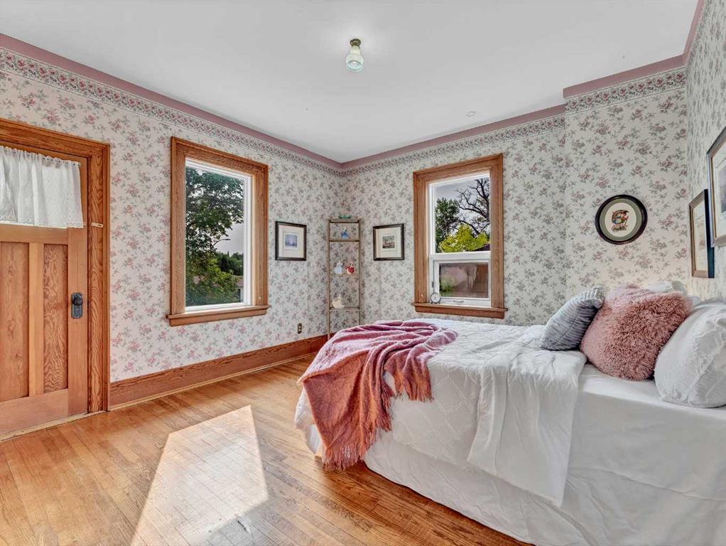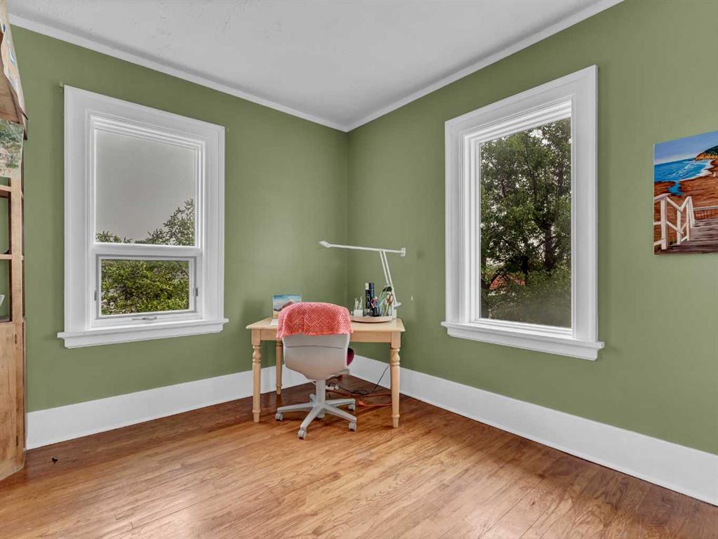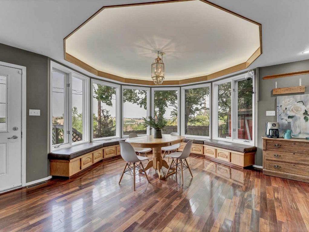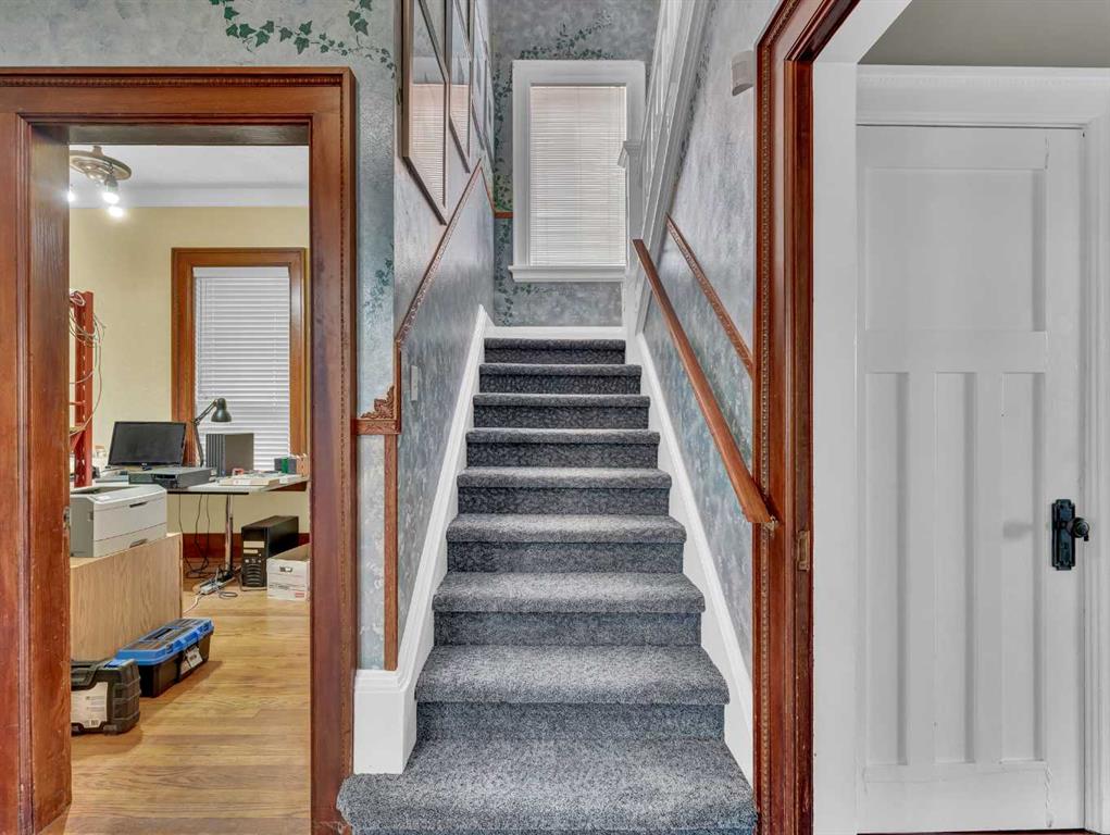 Are you searching for a home with character, ample space, and breathtaking views? Your dream home might just be here! This stunning brick two-storey residence, built in 1912, offers 4,677 total square feet (3,385 above grade) of elegance and charm, nestled on the SW Hill with captivating views of Riverside, the historic St. Pat’s Church, and the hillsides of Crescent Heights. The property boasts incredible curb appeal and sits on a large lot with a fully fenced backyard that’s perfect for family fun and entertaining. Enjoy the expansive back deck complete with a slide into the yard, mature trees, lush landscaping, and a delightful swing set and playhouse. Step inside and be impressed by the spacious interior, including a large rear addition that enhances the home’s functionality. The original main floor features stunning hardwood floors and exquisite woodworking, along with a cozy front den with an original fireplace surround—ideal for a home office. The generously sized living and dining rooms flow seamlessly into each other, creating an inviting space for gatherings.