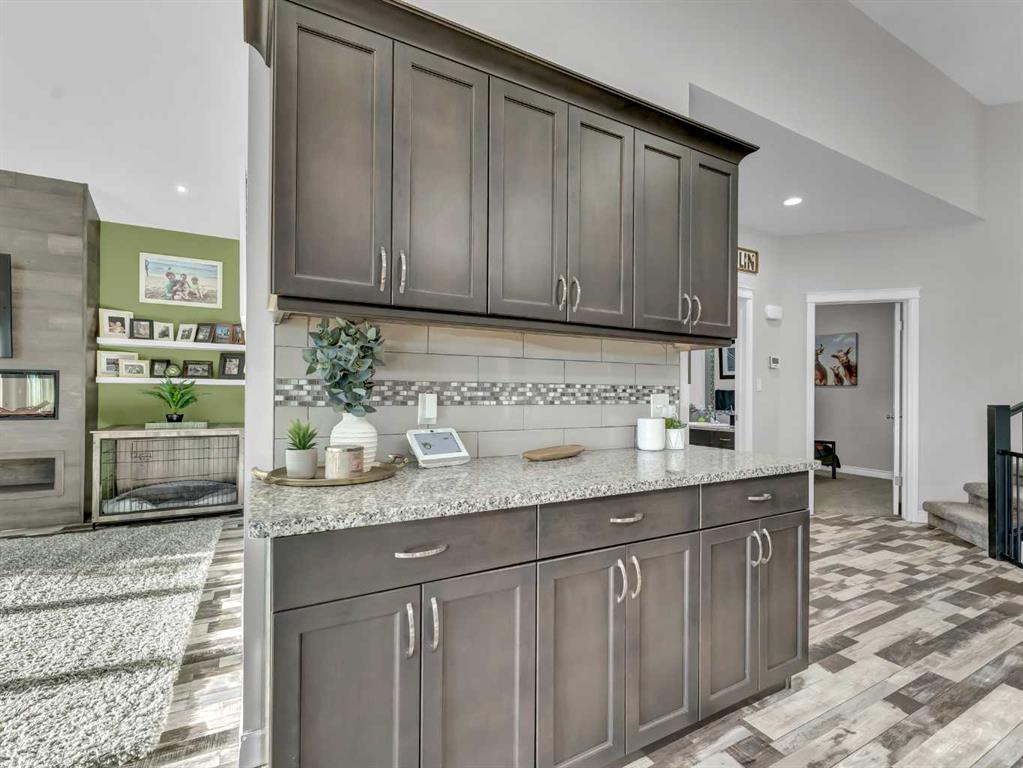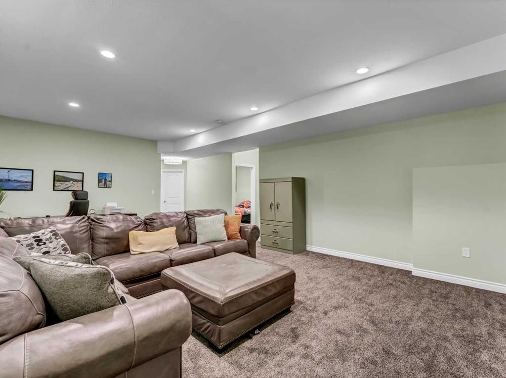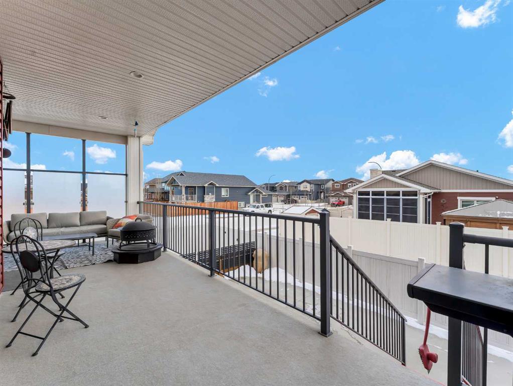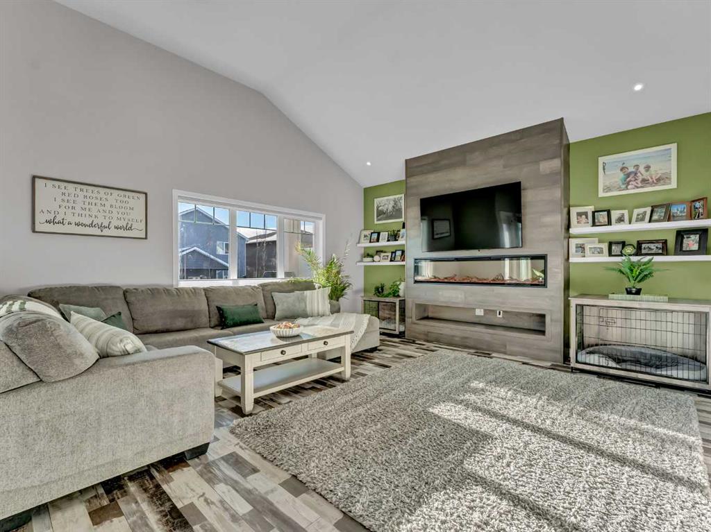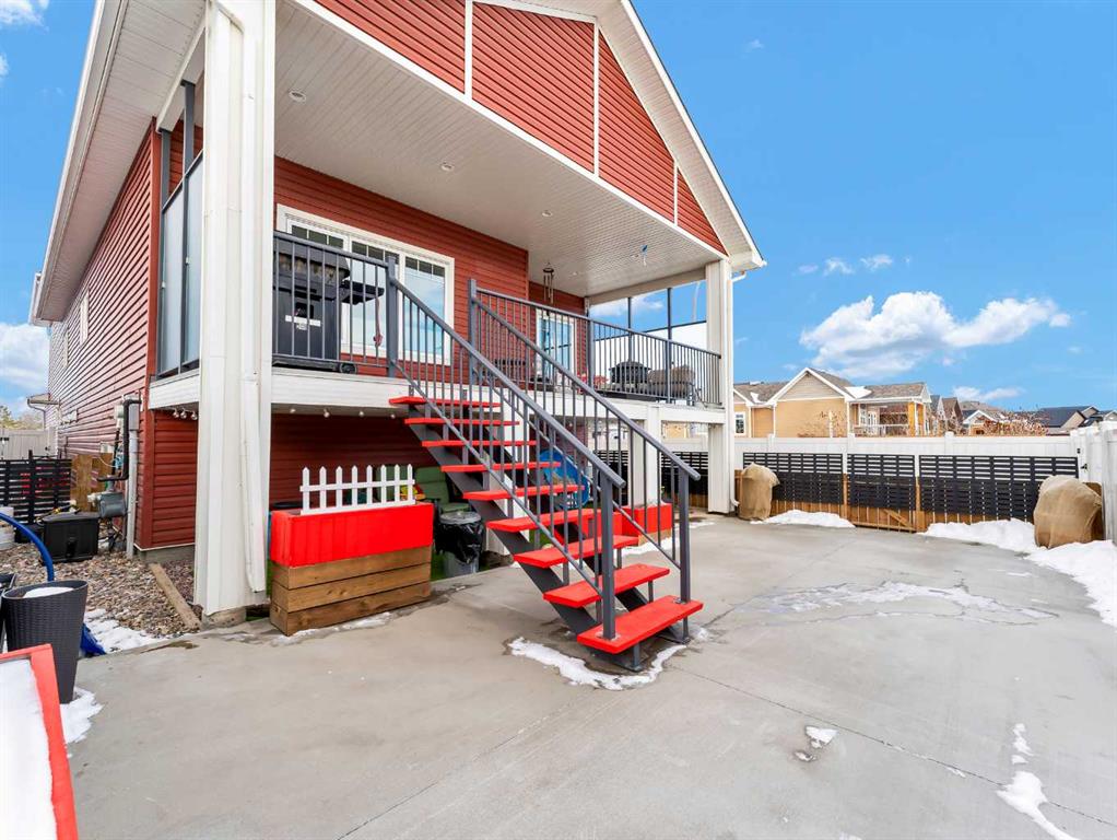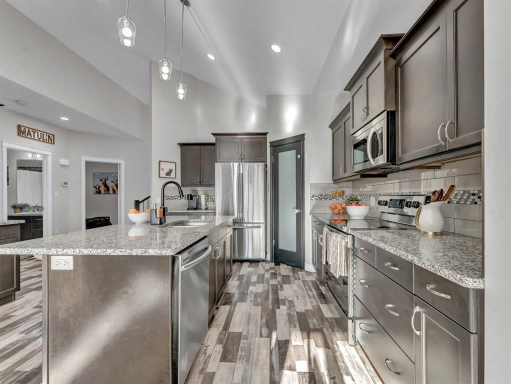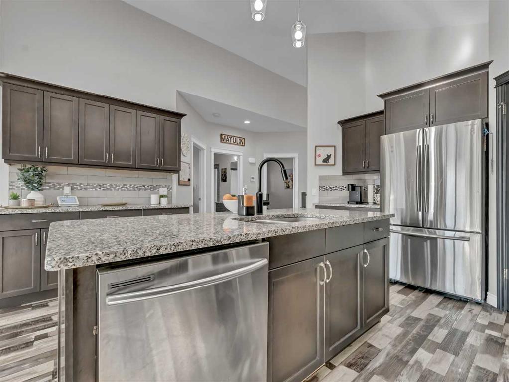 Step inside to a generous entryway featuring a built-in bench and convenient access to the double attached garage. The main floor offers a bright, open-concept design with vaulted ceilings and large windows that flood the space with natural light. The inviting living room is the perfect gathering space, highlighted by a stylish feature electric fireplace that adds warmth and ambiance. The stunning kitchen is the heart of the home, showcasing Beautiful cabinetry, quartz countertops, tile backsplash, a large centre eat-up island, and a corner pantry—ideal for both everyday living and entertaining. The spacious dining area easily accommodates a large table for family gatherings and provides access to the covered back deck. Partially enclosed for added privacy, this outdoor space includes a natural gas BBQ hookup and is perfect for relaxing and enjoying summer evenings. The main floor is completed by two good-sized bedrooms and a large 4-piece bathroom. Just a few steps up, you’ll find the impressive primary retreat offering ample space for all your furniture, dual walk-in closets, and a beautiful 5-piece ensuite featuring dual sinks, a separate walk-in shower, and a luxurious soaker tub. The fully finished lower level adds even more living space with a large family room, two additional bedrooms, a full 4-piece bathroom, and laundry. Outside, the fully fenced and landscaped backyard offers a low-maintenance design with half lawn and half concrete—ideal for both play and entertaining.