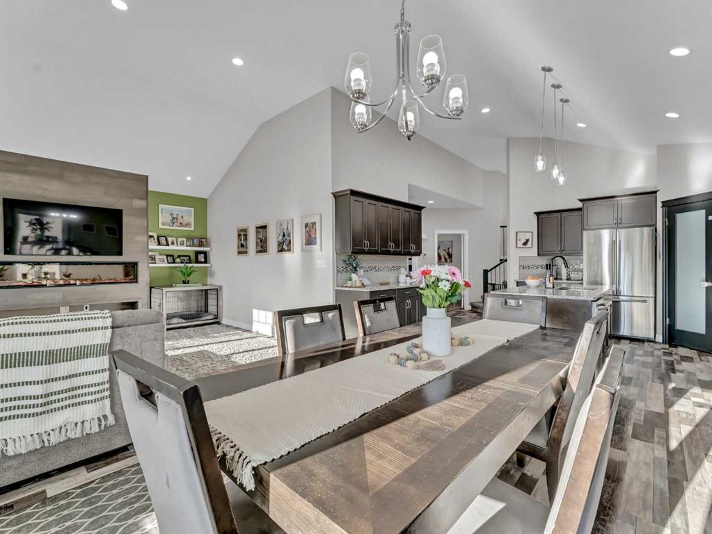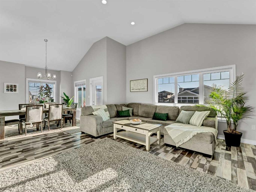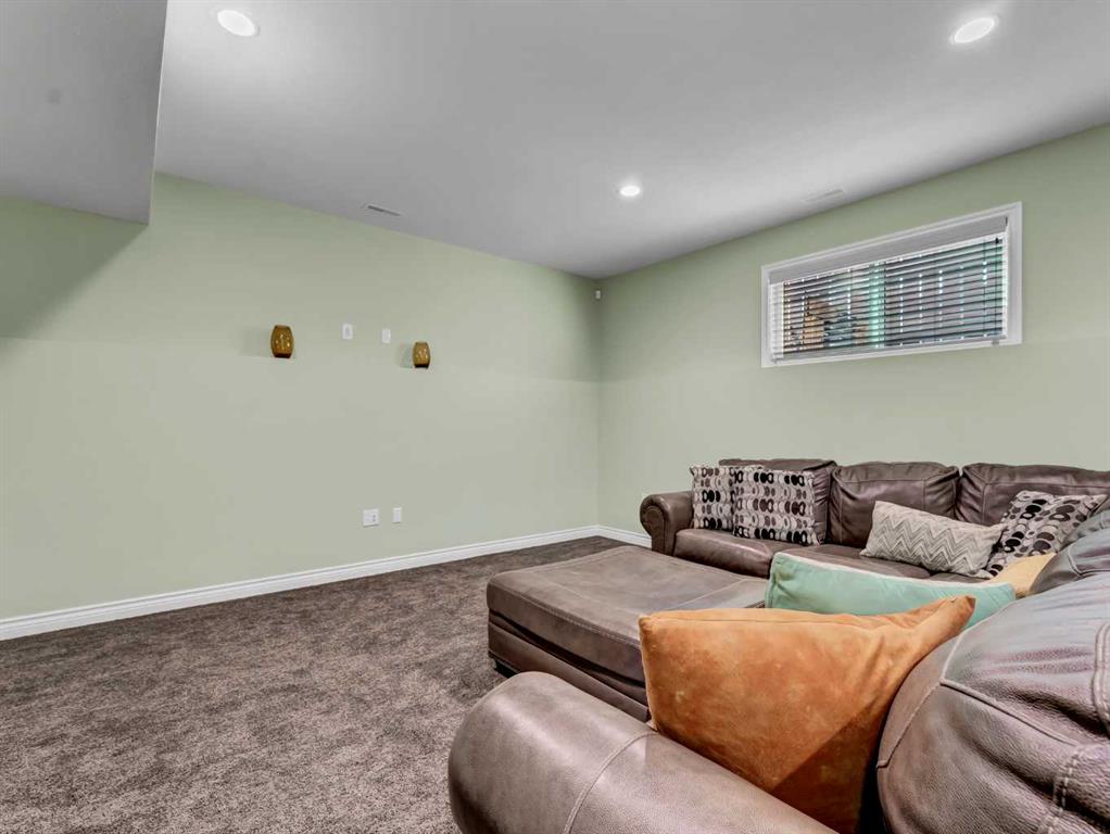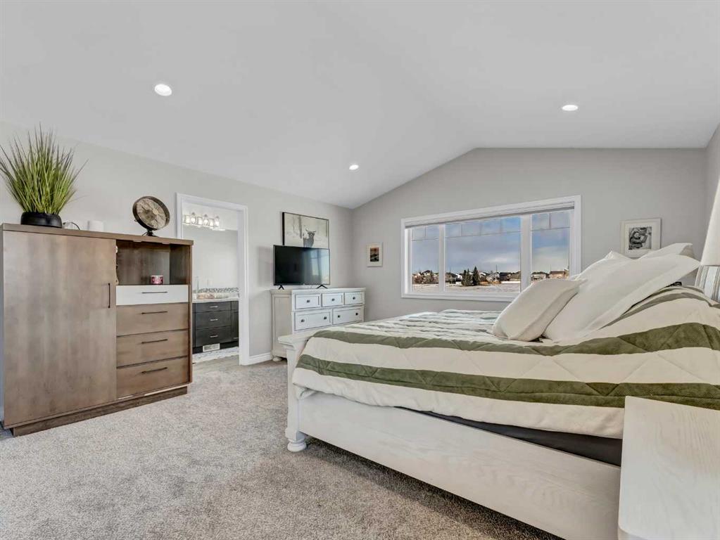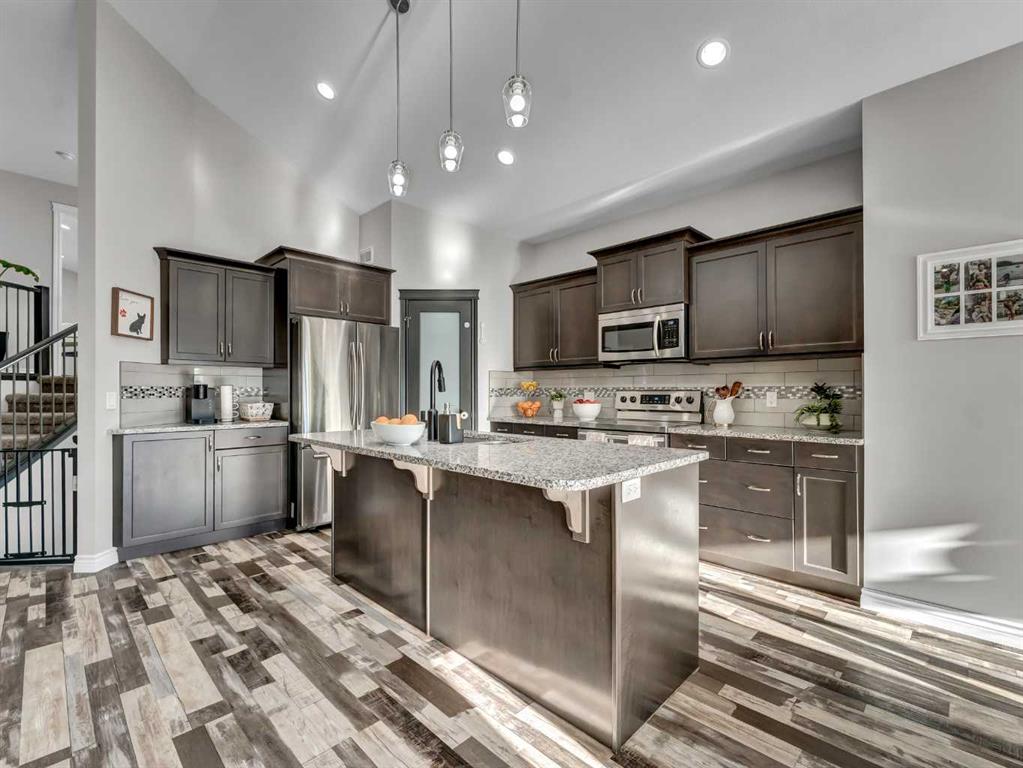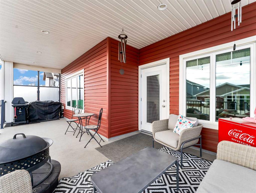 Step inside to a generous entryway featuring a built-in bench and convenient access to the double attached garage. The main floor offers a bright, open-concept design with vaulted ceilings and large windows that flood the space with natural light. The inviting living room is the perfect gathering space, highlighted by a stylish feature electric fireplace that adds warmth and ambiance. The stunning kitchen is the heart of the home, showcasing Beautiful cabinetry, quartz countertops, tile backsplash, a large centre eat-up island, and a corner pantry—ideal for both everyday living and entertaining. The spacious dining area easily accommodates a large table for family gatherings and provides access to the covered back deck. Partially enclosed for added privacy, this outdoor space includes a natural gas BBQ hookup and is perfect for relaxing and enjoying summer evenings. The main floor is completed by two good-sized bedrooms and a large 4-piece bathroom. Just a few steps up, you’ll find the impressive primary retreat offering ample space for all your furniture, dual walk-in closets, and a beautiful 5-piece ensuite featuring dual sinks, a separate walk-in shower, and a luxurious soaker tub. The fully finished lower level adds even more living space with a large family room, two additional bedrooms, a full 4-piece bathroom, and laundry. Outside, the fully fenced and landscaped backyard offers a low-maintenance design with half lawn and half concrete—ideal for both play and entertaining.