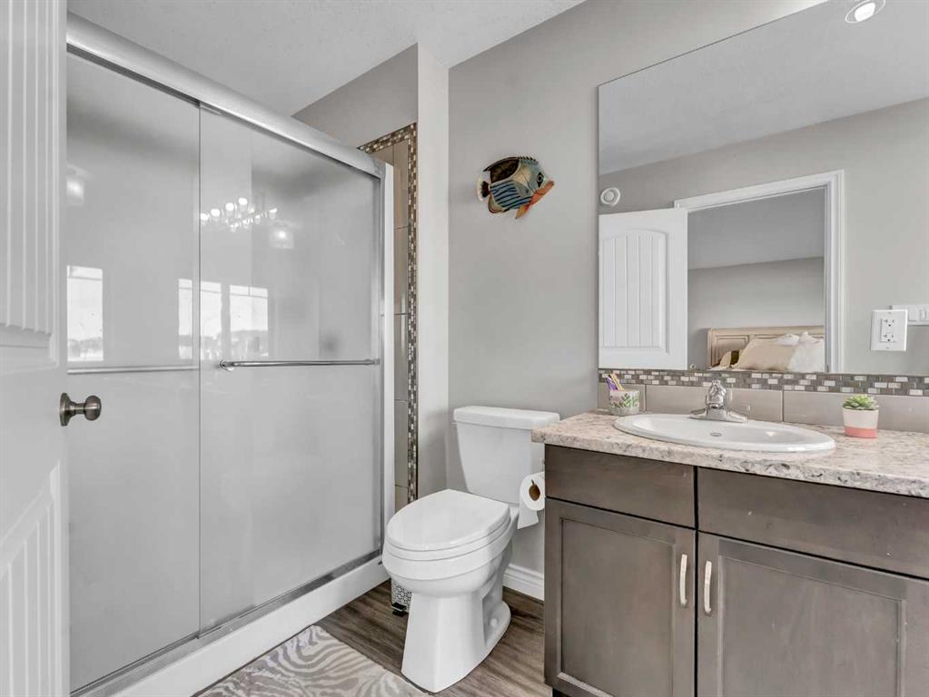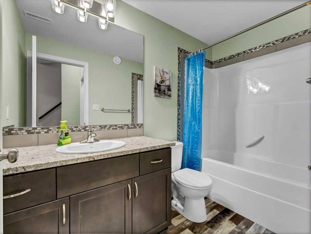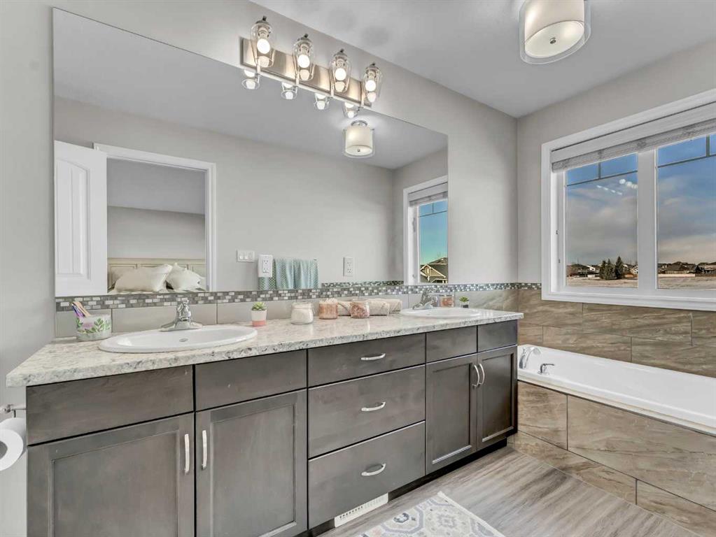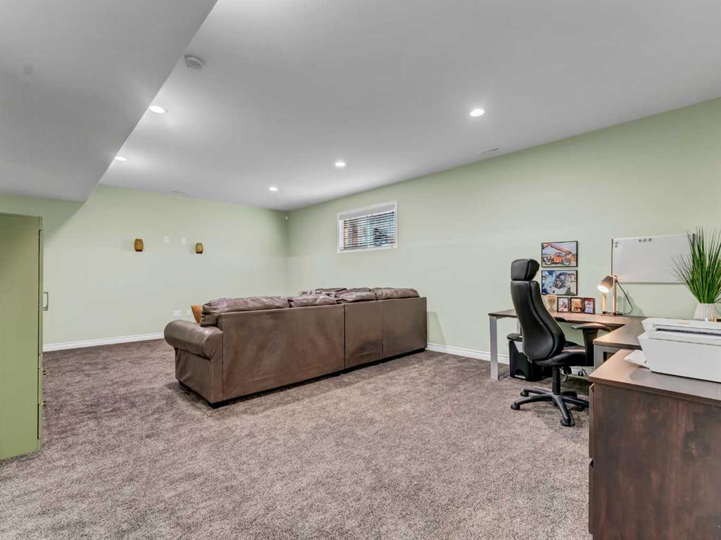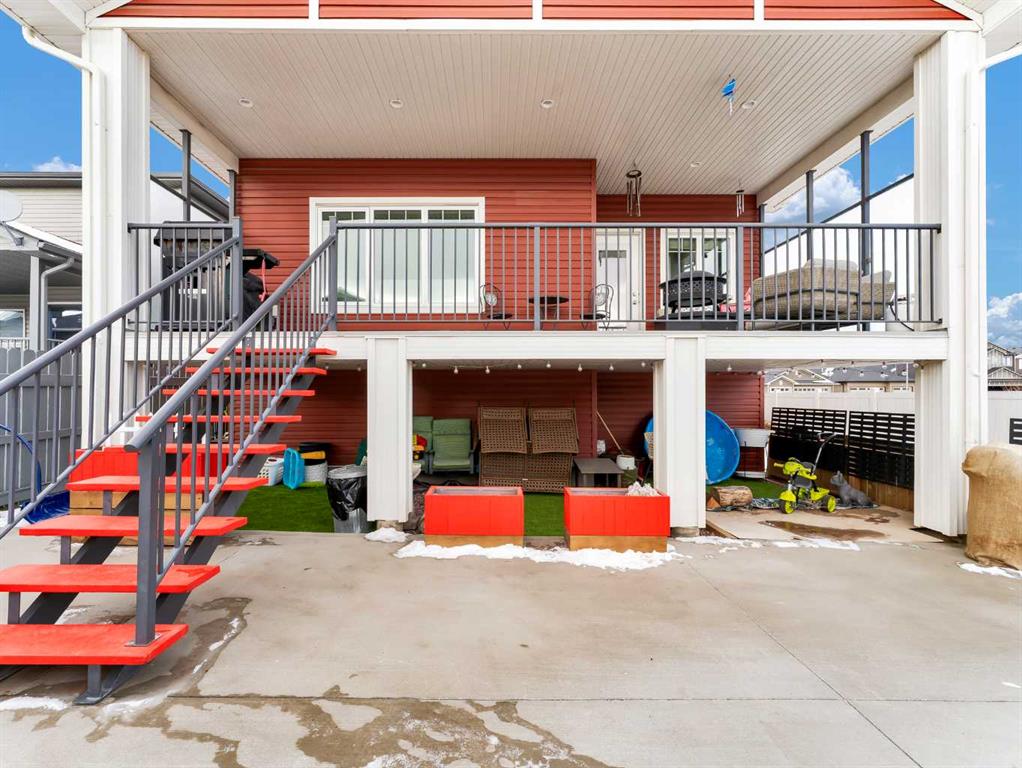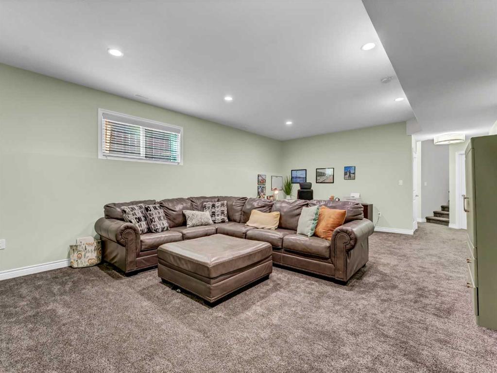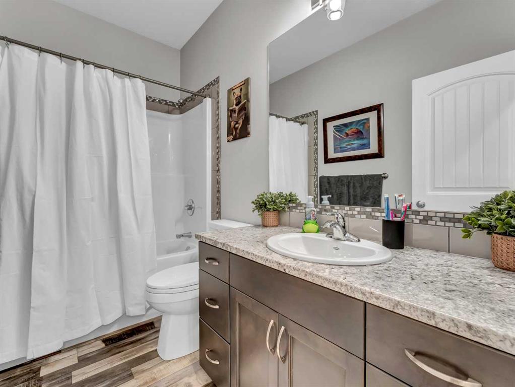 Step inside to a generous entryway featuring a built-in bench and convenient access to the double attached garage. The main floor offers a bright, open-concept design with vaulted ceilings and large windows that flood the space with natural light. The inviting living room is the perfect gathering space, highlighted by a stylish feature electric fireplace that adds warmth and ambiance. The stunning kitchen is the heart of the home, showcasing Beautiful cabinetry, quartz countertops, tile backsplash, a large centre eat-up island, and a corner pantry—ideal for both everyday living and entertaining. The spacious dining area easily accommodates a large table for family gatherings and provides access to the covered back deck. Partially enclosed for added privacy, this outdoor space includes a natural gas BBQ hookup and is perfect for relaxing and enjoying summer evenings. The main floor is completed by two good-sized bedrooms and a large 4-piece bathroom. Just a few steps up, you’ll find the impressive primary retreat offering ample space for all your furniture, dual walk-in closets, and a beautiful 5-piece ensuite featuring dual sinks, a separate walk-in shower, and a luxurious soaker tub. The fully finished lower level adds even more living space with a large family room, two additional bedrooms, a full 4-piece bathroom, and laundry. Outside, the fully fenced and landscaped backyard offers a low-maintenance design with half lawn and half concrete—ideal for both play and entertaining.
